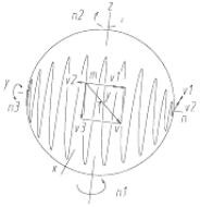 要實現正弦波研磨軌跡,可以根據研具和工件的相對運動關系來實現。將研具和工件的相對運動分解為3個運動,即研具的轉動n1、雙偏心半球閥閥芯的轉動n2和閥芯的擺動n3。為使研具在研磨中有較好的嵌砂性能,將研具放在工件的下面,如圖1(a)所示。當閥芯按正弦波規律擺動時,磨粒軌跡為類似于振動衰減的正弦波,如圖1(b)所示。若閥芯只作正弦波規律往復擺動,其磨削、磨損、去除材料量等產生嚴重不均勻,雙偏心半球閥閥芯的面輪廓度、表面粗糙度就很難達到均勻一致,不能滿足要求。為解決此問題,讓閥芯有一轉速n2,不斷變動其自身位置,以保證整個球面的研磨、磨損等達到均勻一致,研磨軌跡如圖1(c)所示。